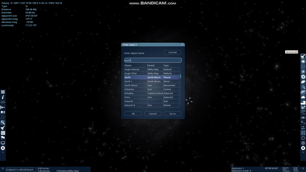 그럼 이런 'FIND OBJECT'라는 메뉴가 뜨는데 여기서 입력란에 'earth'라고 검색한다.